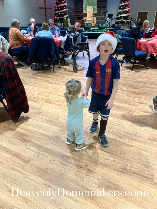 To end the evening, Justus and a couple other Heartlands guys sang us some fun Christmas songs. Our friend Kaitlyn grabbed Auggie to dance, and Anna joined them. Auggie wasn’t sure at first, but then had huge smiles by the end. How could he not?
