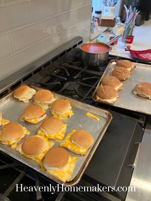 For dinner that night, I made a simple meal of Tomato Soup with Meat and Cheese Melts. The sandwiches started to disappear before I could get a picture!