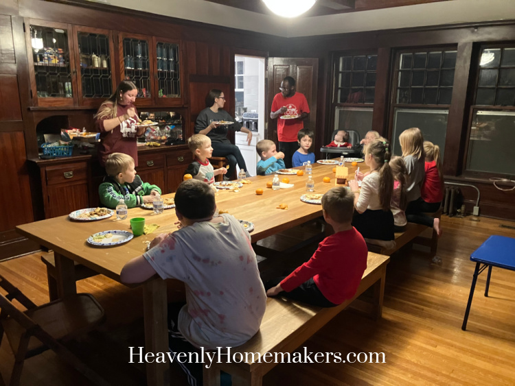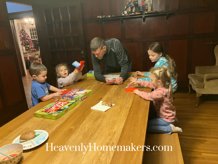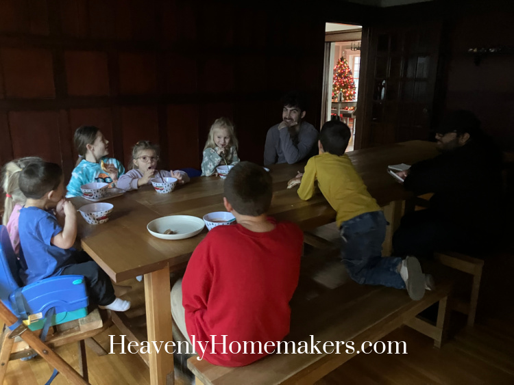 One of our kids was having sensory struggles and insisted on leaving the light off during dinner. Thankfully, everyone cooperated with this and we were able to talk the kids into eating in the dark. :) For the record, it was only 4:45pm.