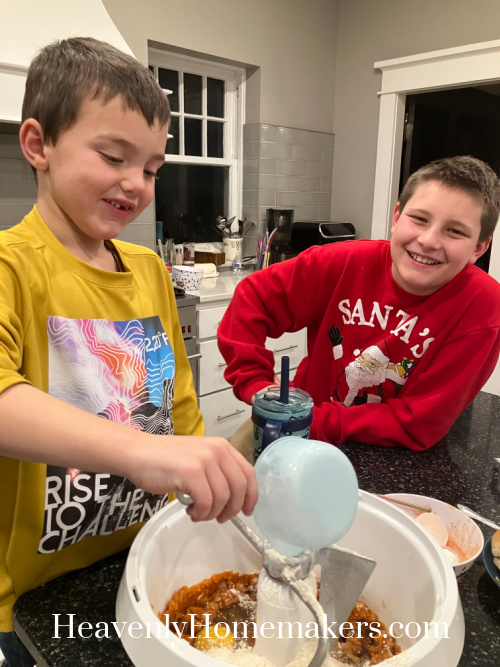 During the evening, Keith and Brayden helped me make Mini Pumpkin Muffins for upcoming snack needs.
