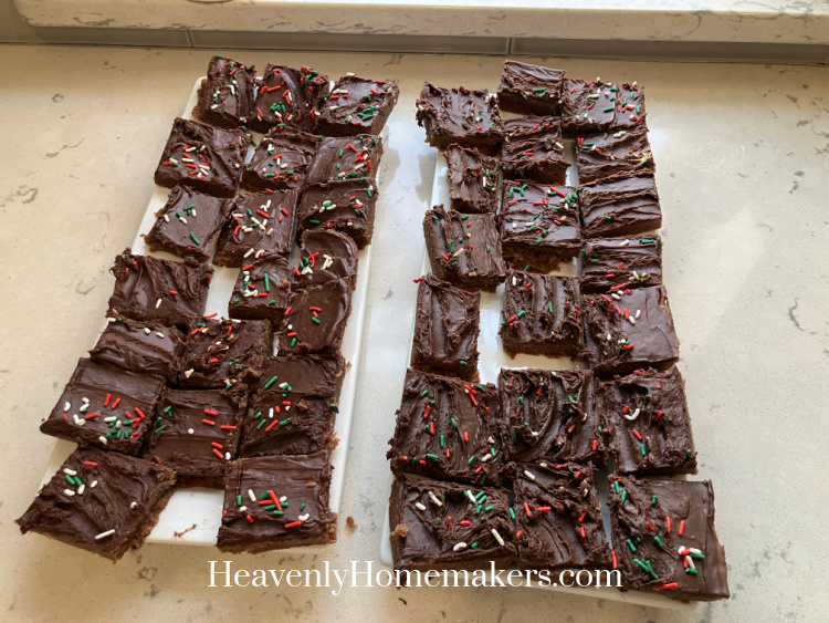 For dessert, I made a big pan of Brownies, then frosted them and put on Christmas sprinkles.