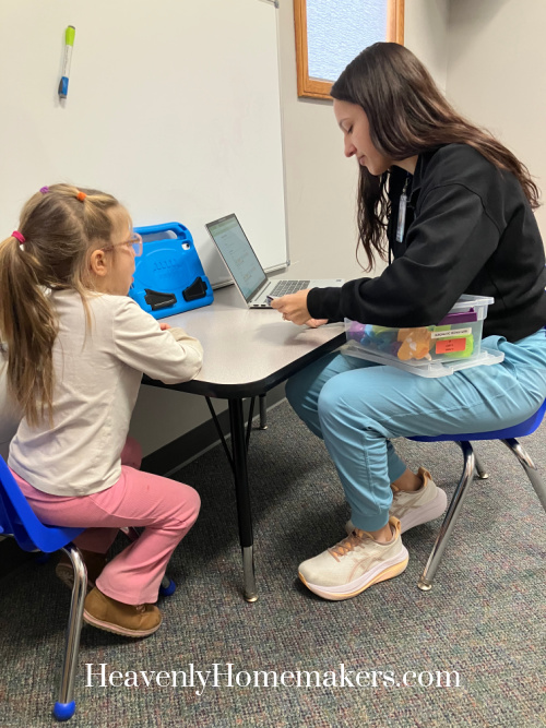 We were able to spend some time playing games in between the kids’ therapy needs. Anna and her RBT came in and joined us for a round of Rack-o as they worked on her skills with taking turns, waiting, and sharing.