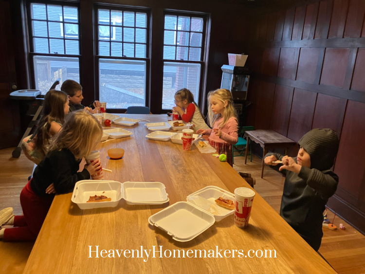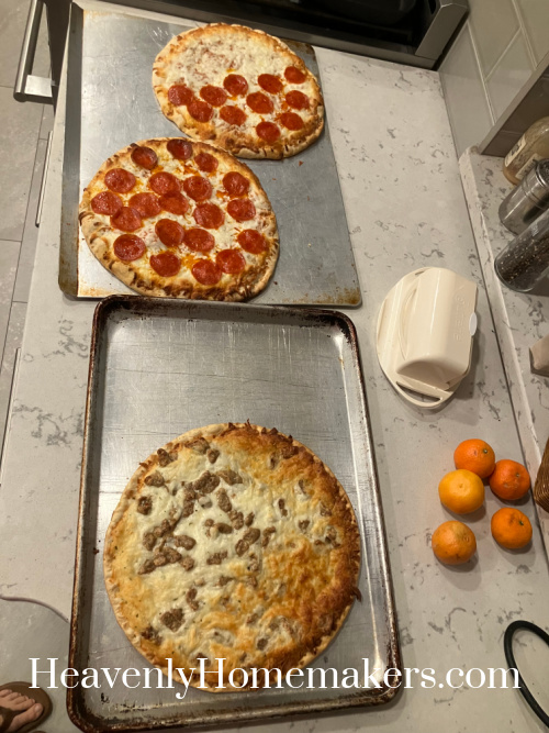 The kids traveled very well and we are so thankful! Back at home, we unpacked and started laundry, then made Frozen Pizza for dinner.
