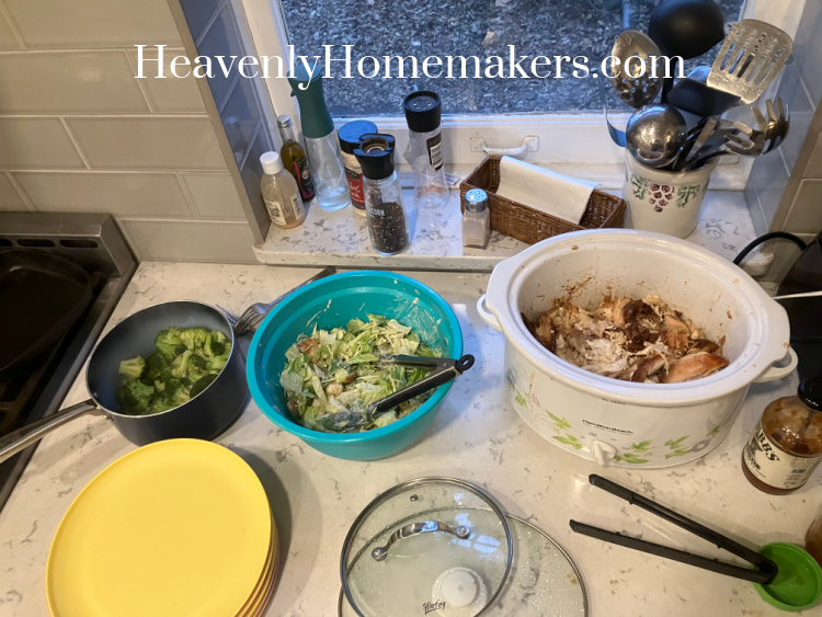 One of my stops that morning was Costco, and I brought home a Rotisserie Chicken for dinner. We ate it with Caesar Salad, Steamed Broccoli, and Rolls. Then I used the bones to make a pot of Broth to use for soup later in the week.