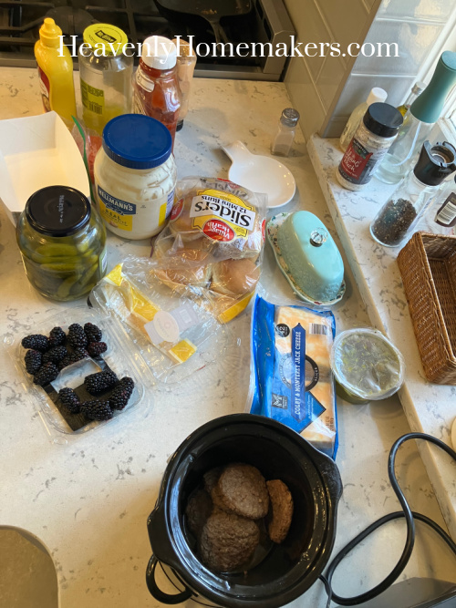 Somehow, everyone was still hungry for lunch when we got home. I’d made hamburgers the day before and rewarmed them for our lunch that day.