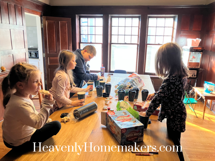 We put together some Hot Cocoa cups to share with neighbors via our Little Free Pantry tote.