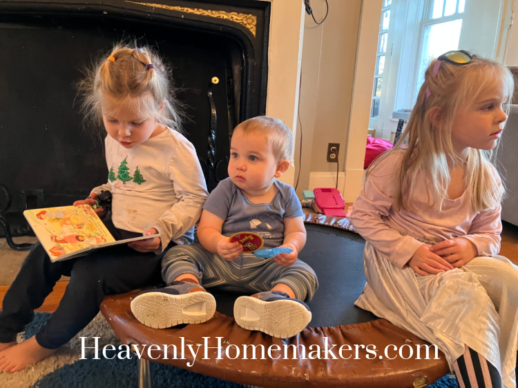 Our older kids’ families started arriving late that afternoon! They’d all had other plans that day so we’d decided to get together in the evening to hang out. (Elias and Malorie were visiting her family in Texas all week.) Acacia and Josie took turns “reading” books to Arrow.