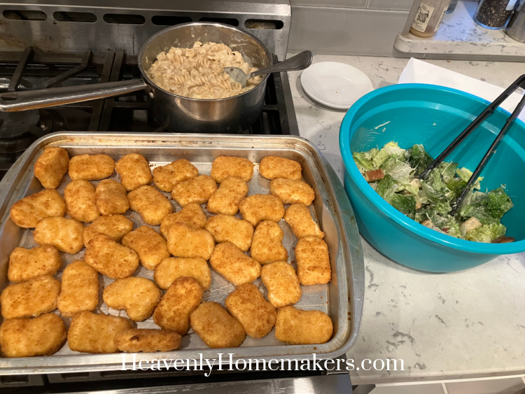 Back at home I threw together a quick dinner of Chicken Nuggets, leftover Mac and Cheese, and Salad. The kids were pretty wild and loud that night after being cooped up in the house to avoid being outside in the cold. Matt tried to run them around up and down our stairs with a game of ball tag, which they loved. Then he attempted a board game, which was absolutely nuts. Meanwhile, I was trying to manage kids jumping and yelling on the sidelines. God bless us everyone.