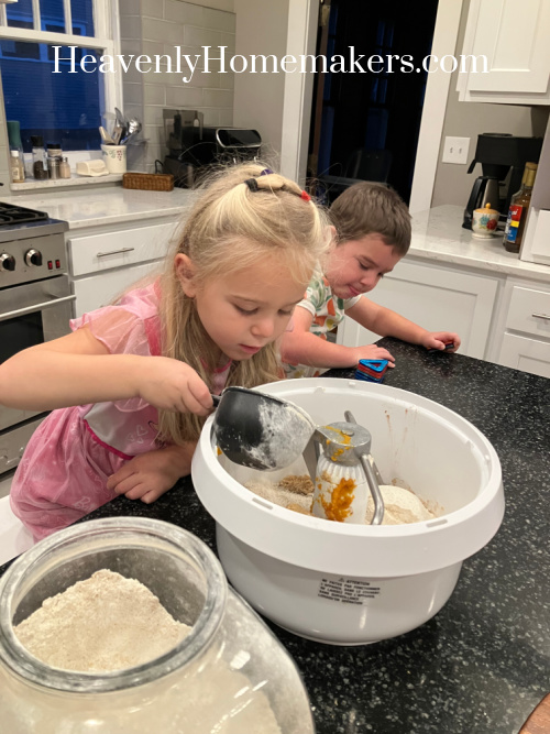 Tuesday morning, Josie helped me make Pumpkin Muffins.