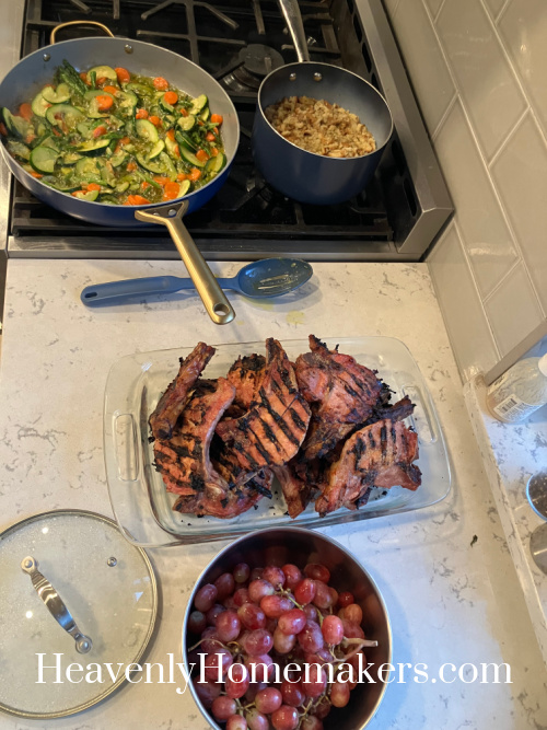 It was a hectic evening as Anna struggled her way through ABA therapy that night also. Dinner was really good though! I’d smoked Pork Chops that afternoon, then Stir Fried some Veggies (asparagus, zucchini, and carrots), and made Stuffing (from a box, ha). This all tasted delicious!