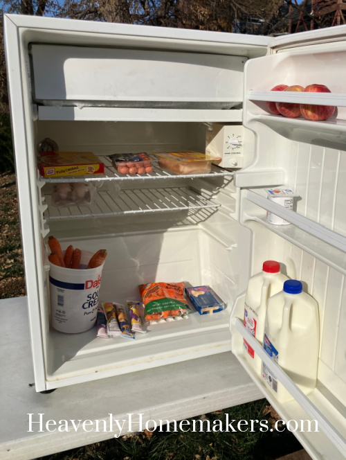 We checked our Little Free Pantry fridge after breakfast and it was completely empty – praise God! That means more people came and took what they needed after we went to bed. So the kids helped me restock it.
