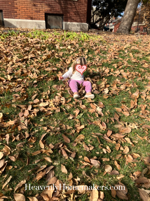 Little Sweetheart spent the day with us again and we took full advantage of sunshine and crunchy leaves to play in.