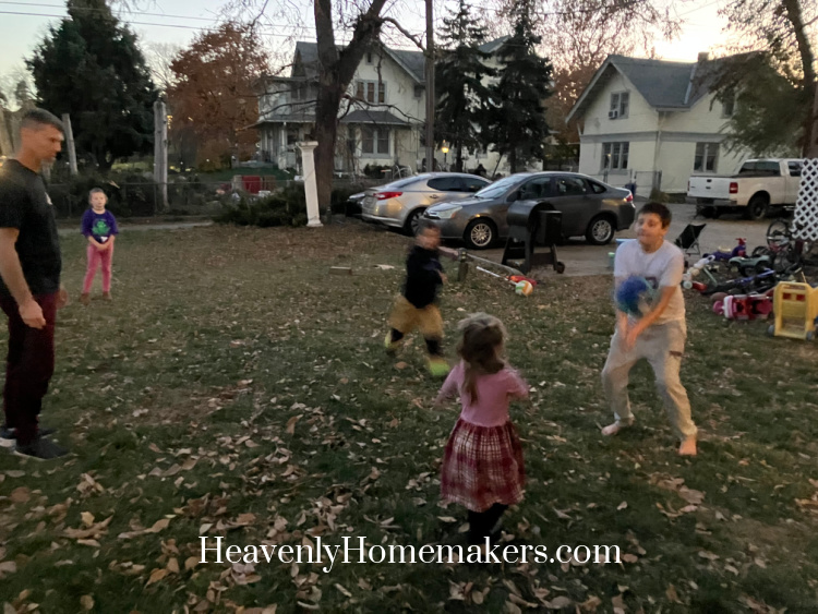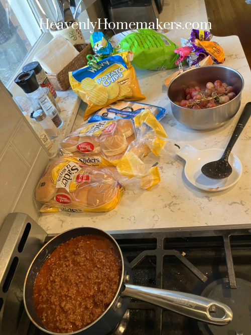 I’d made a very simple meal of Sloppy Joes with Chips and Grapes for dinner. My goal was to be able to spend time with the kids outside before it got dark since the temperatures were so warm.