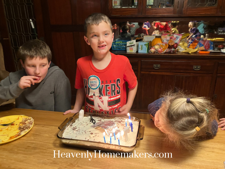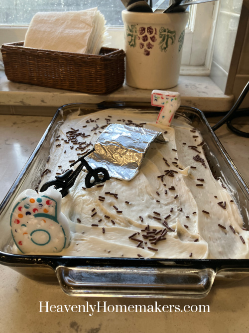 That afternoon, I got ready for Keith’s 7th birthday dinner. He wanted a Dirt Bike cake so I rigged up a bike with a ramp. He loved it!