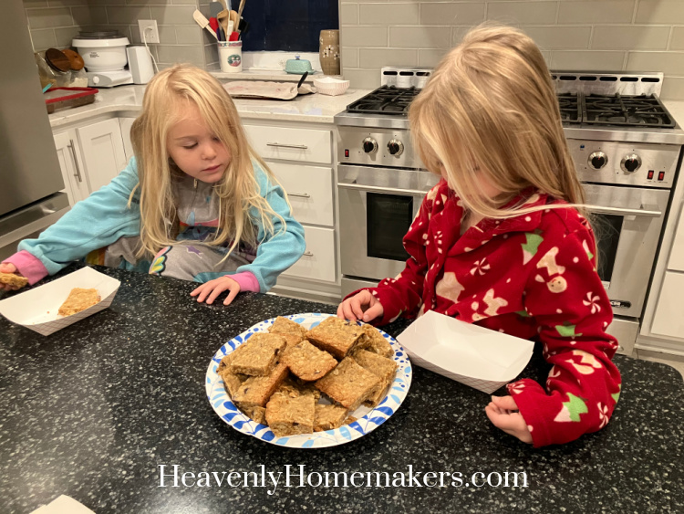 Anna and Josie were the first to help themselves to Breakfast Cookie Bars on Sunday morning. Our kids (and me, for that matter) still haven’t adjusted to Daylight Savings Time so our mornings are starting ridiculously early.